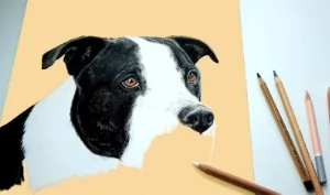 With the image and size decided upon, I chose a background colour that would best complement Tango’s colouring and would make the drawing pop.